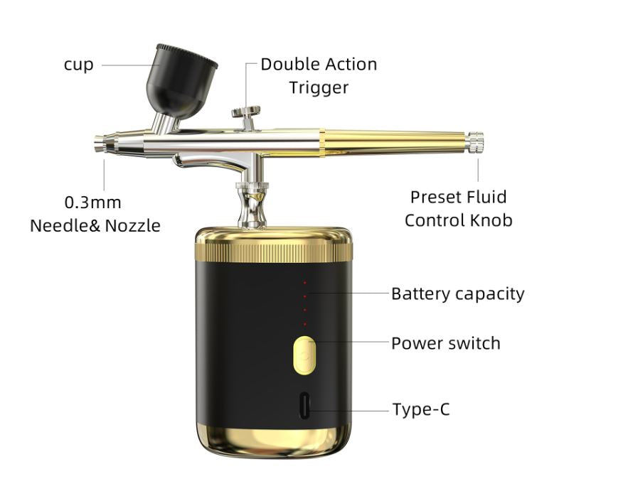 Designed with precision and crafted with high-quality metal, this mini airbrush compressor kit is perfect for achieving a flawless and natural-looking beard. Its compact size and lightweight design make it easy to handle and maneuver, giving you full control over the enhancement process.